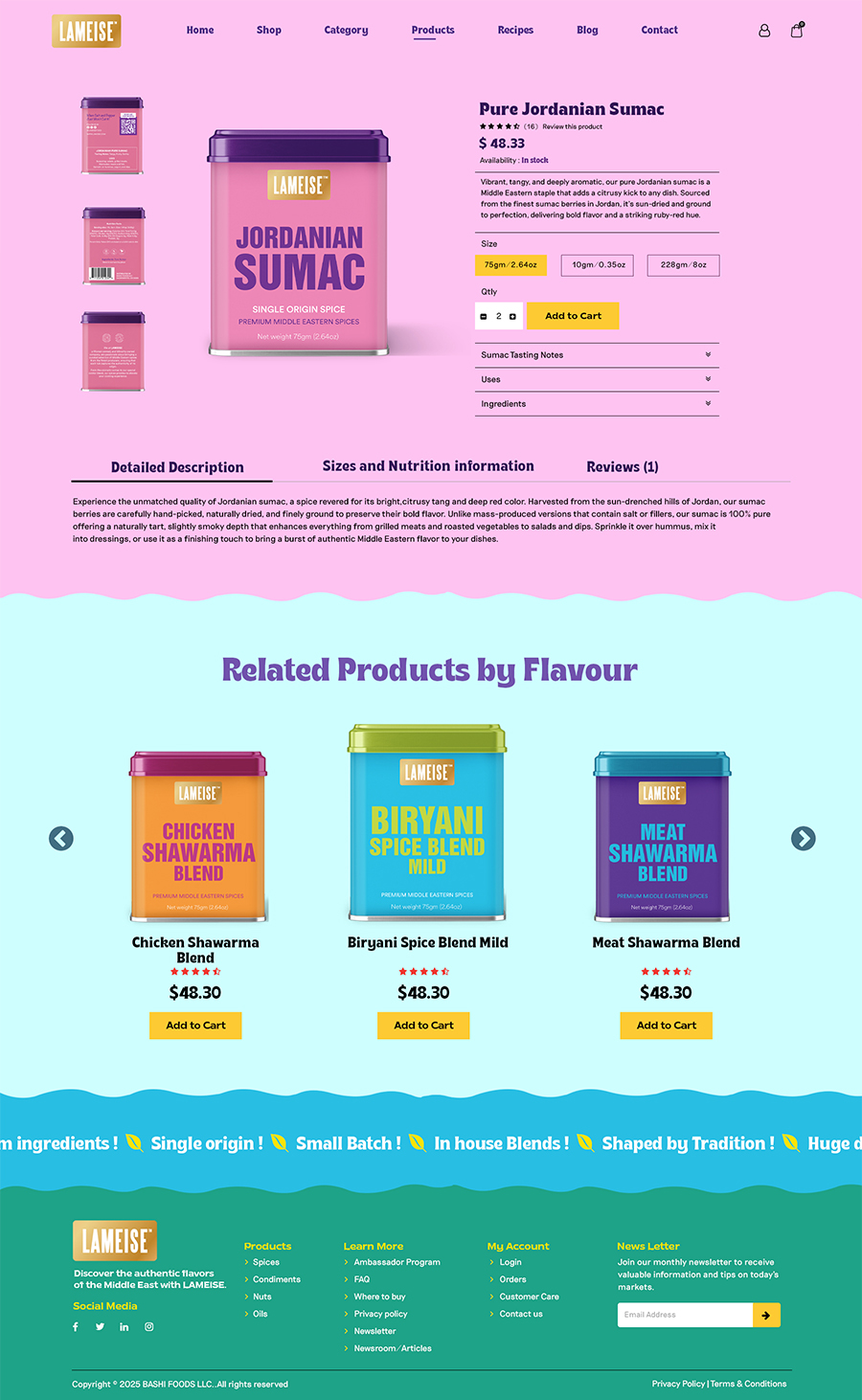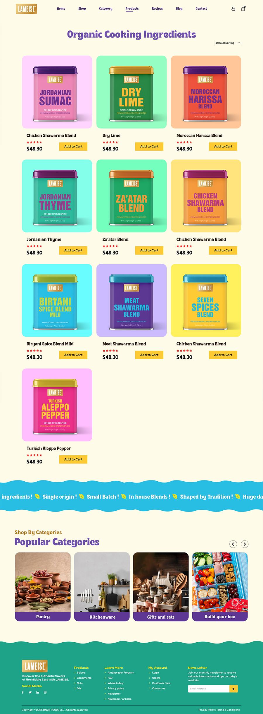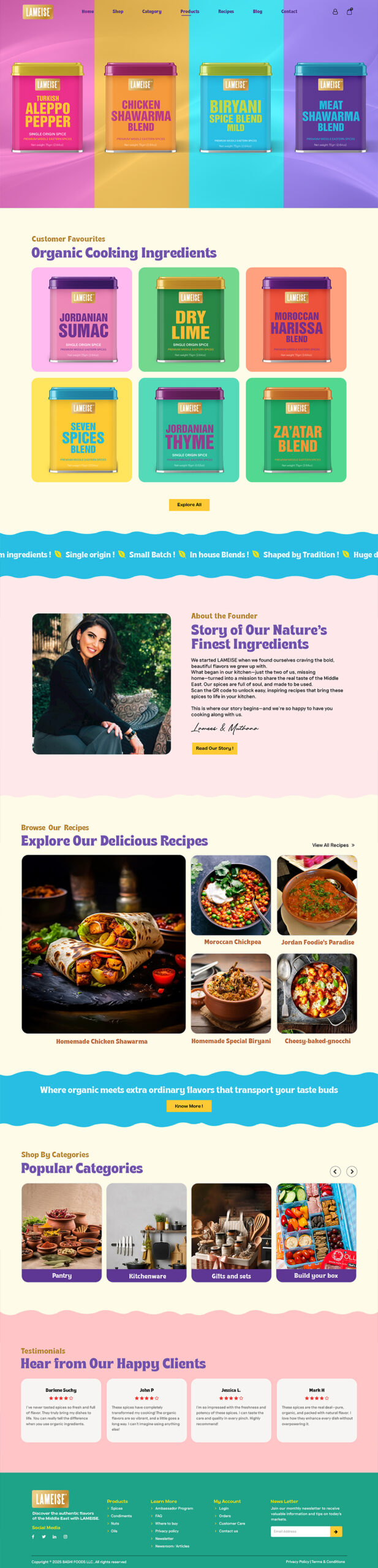 We partnered with Lameise (Bashi Foods LLC) to execute a comprehensive digital transformation of their e-commerce platform. The goal was to evolve their online presence from a simple storefront into a premium, culinary-focused destination that reflects the “soul” of Middle Eastern spices. By integrating a vast repository of printable recipes and a streamlined shopping experience, the redesign aimed to bridge the gap between authentic traditional flavours and the modern home cook’s journey.