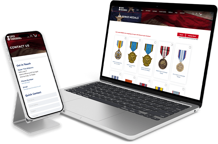We partnered with SuperThin Ribbons to develop a high-performance, custom e-commerce solution tailored to the unique needs of their military customer base. SuperThin Ribbons specializes in U.S. Military ribbons and medals, where ordering accuracy is paramount due to strict regulations. The core challenge was transforming the complex configuration of awards, driven by service branch and specific decorations, into a digital experience that was both accurate and easy-to-use.